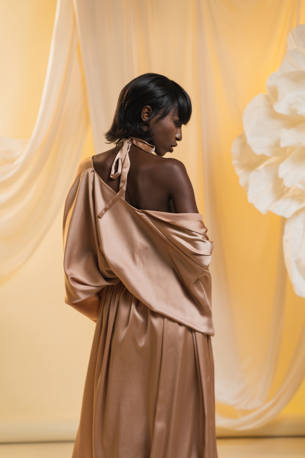 Evoking the golden calm of a desert sunset, the Desert Mirage Kimono flows like a breeze over sun-kissed skin. Its subtle satin shine and effortless drape make it the perfect piece for quiet indulgence or striking arrivals.