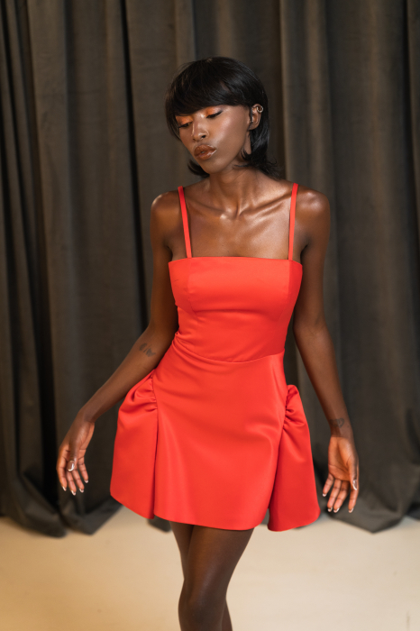 Scarlett este expresia forței feminine în forma ei cea mai clară. O rochie mini cu volum sculptural și linii curate, creată pentru apariții care nu trec neobservate. Puternică, feminină, asumată.